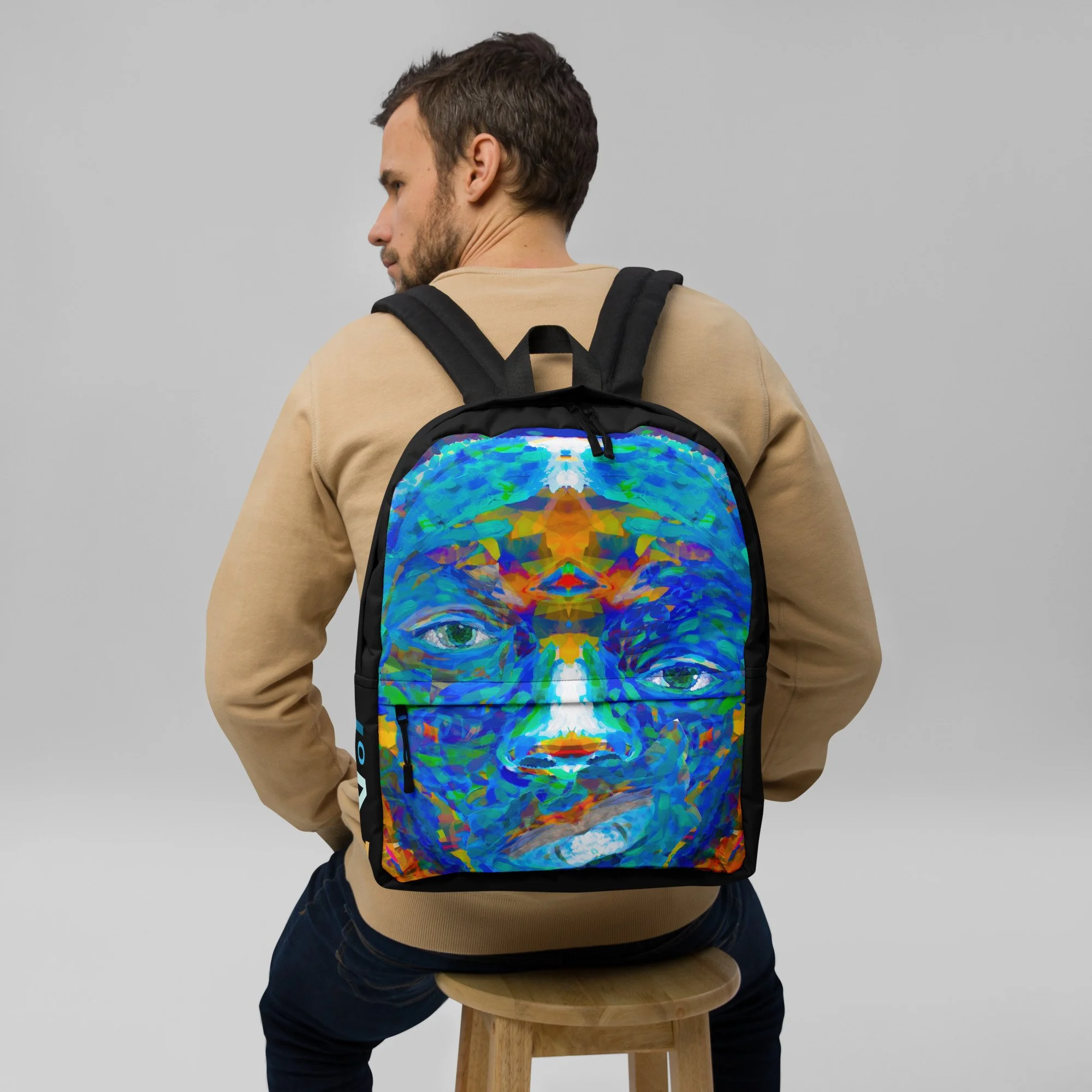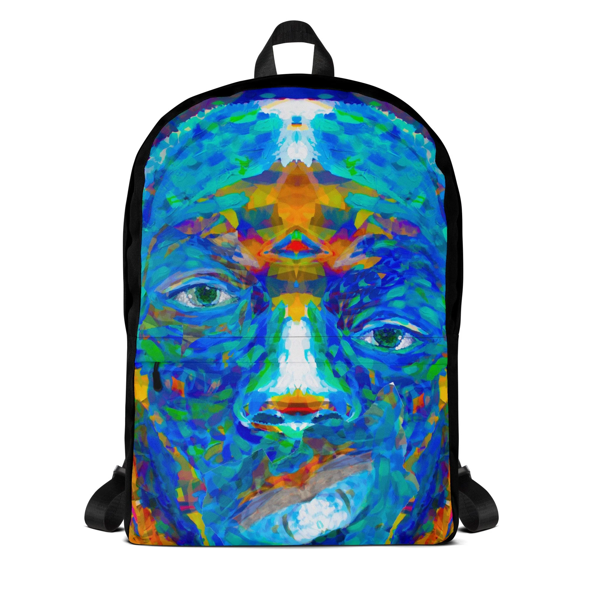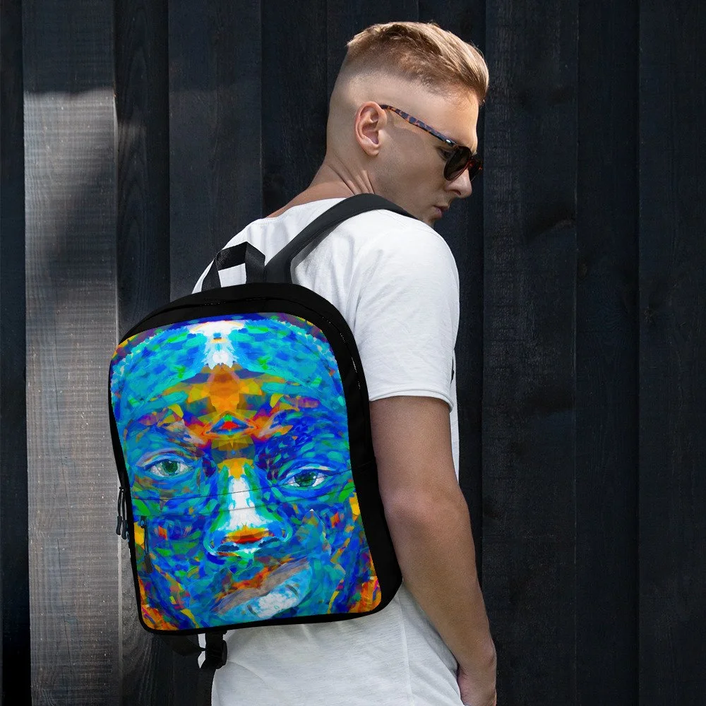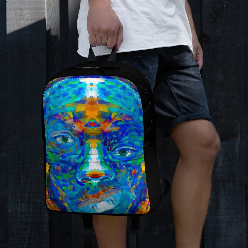 The art on the Repaired Pieces backpack comes from one of the most powerful pieces in the Jonah Artfolio collection — a face built from layered, textured, visible pieces that only resolve into something extraordinary when you step back and take in the whole. Nothing hidden. Nothing smoothed over. Every crack right there in the open.