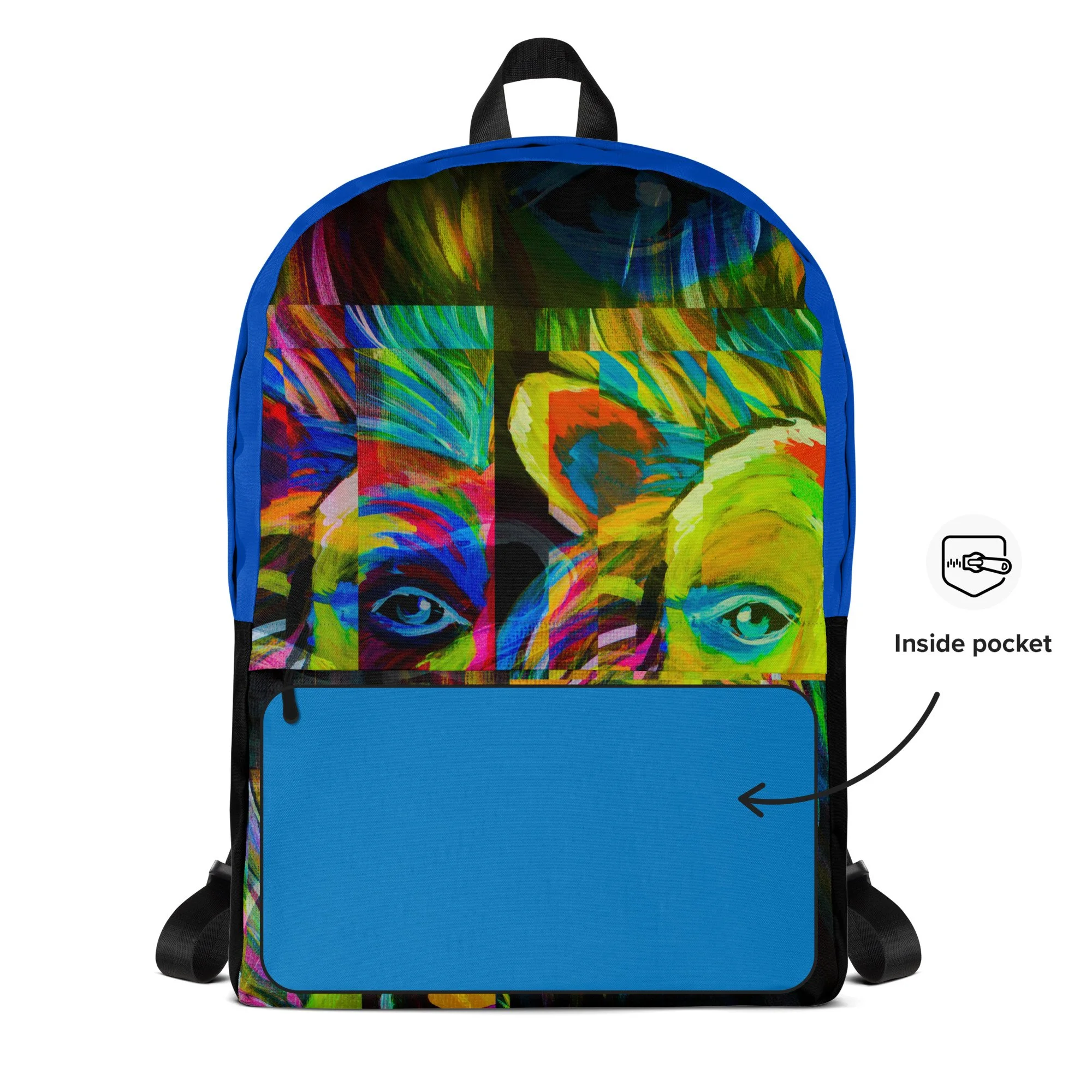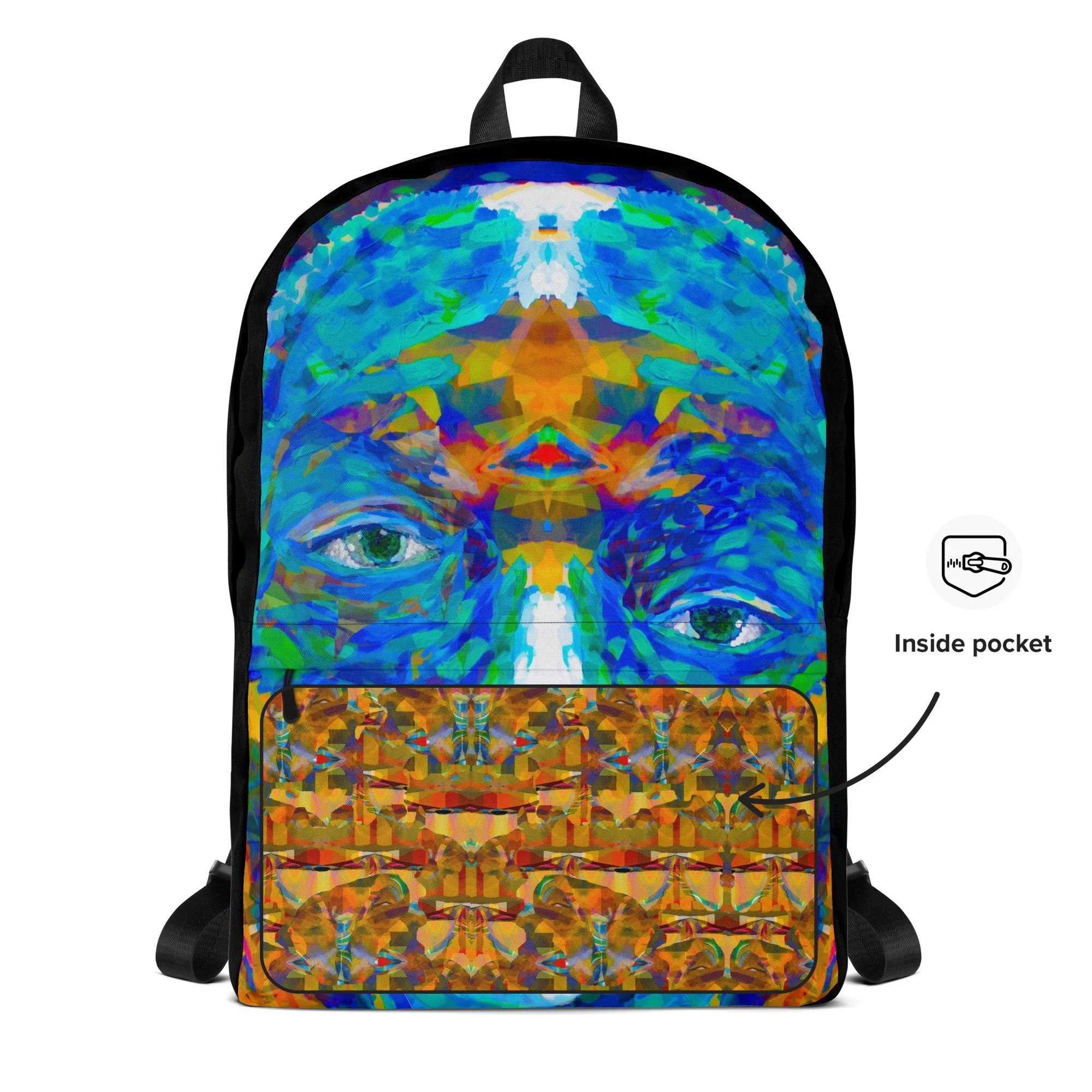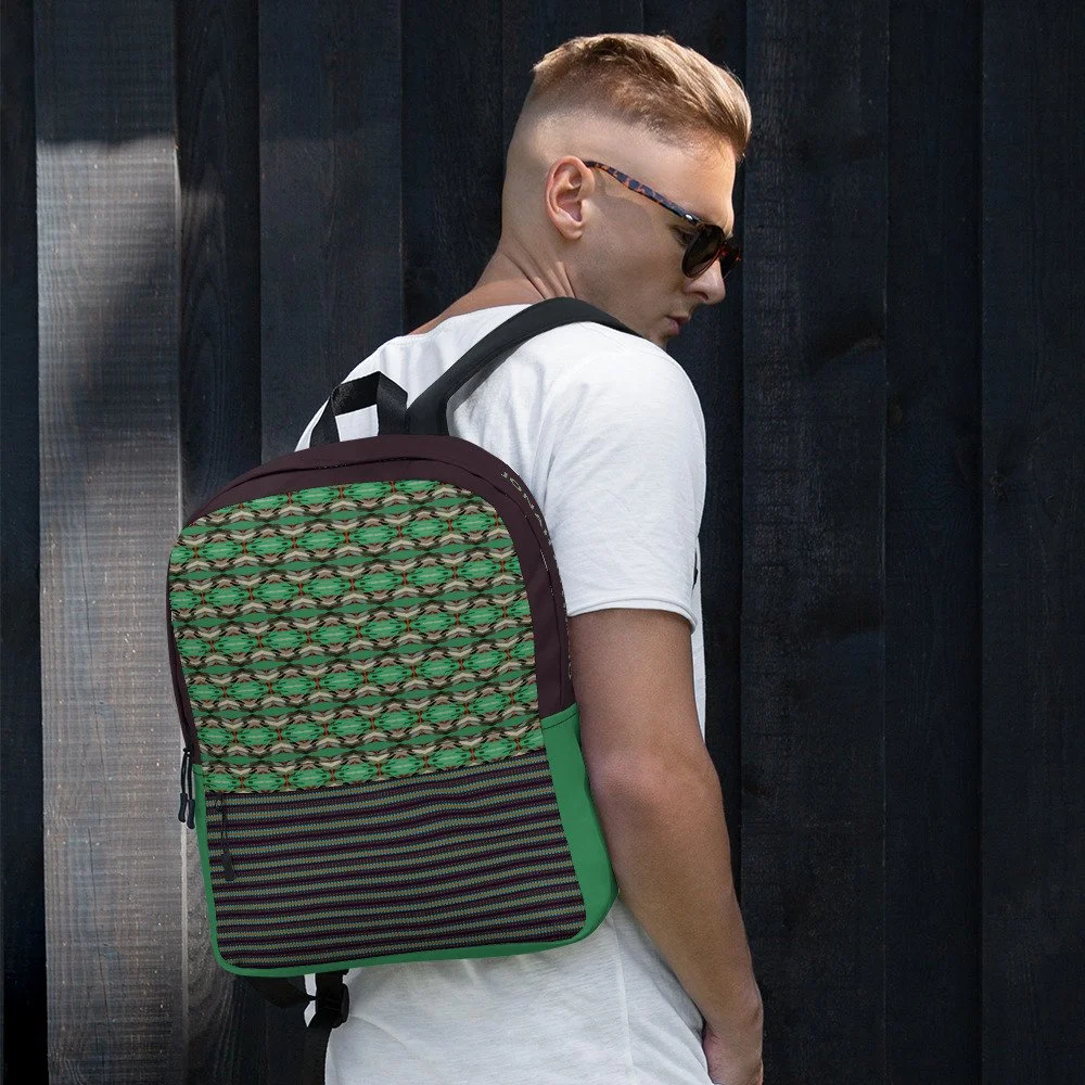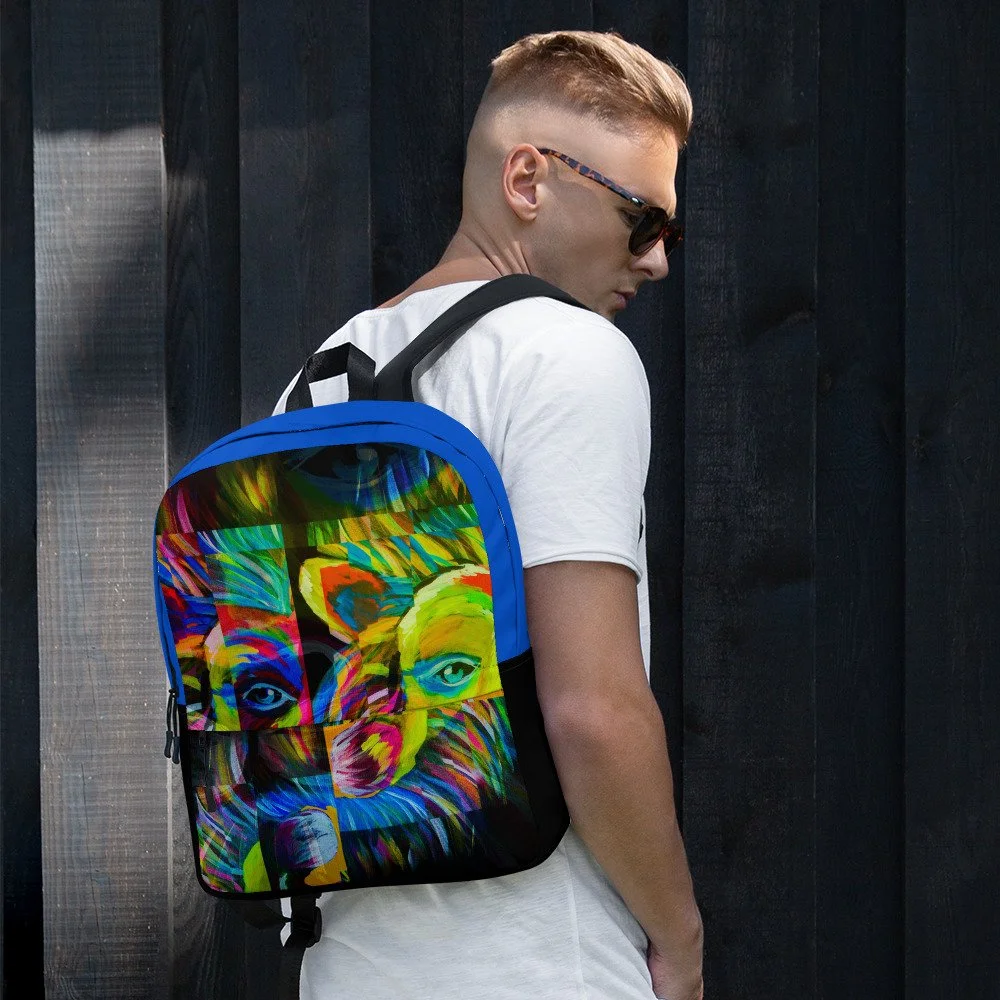 The art on the Repaired Pieces backpack comes from one of the most powerful pieces in the Jonah Artfolio collection — a face built from layered, textured, visible pieces that only resolve into something extraordinary when you step back and take in the whole. Nothing hidden. Nothing smoothed over. Every crack right there in the open.