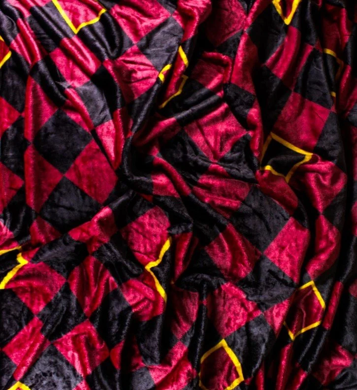 50" X 60" (inches) throw blanket made of fleece & polyester. This charming blanket carries royal colors and is crowned with burnt orange diamonds.